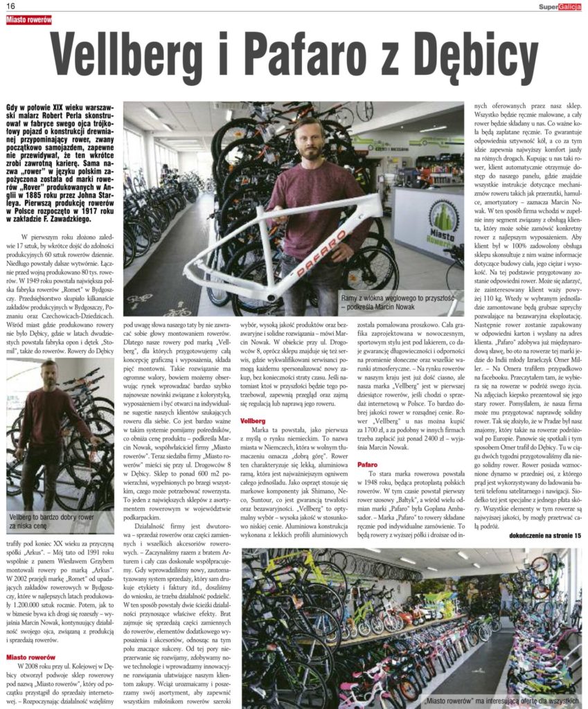 Vellberg i Pafaro z Dębicy, lokalna gazeta Super Galicja wspomniała o naszym sklepie rowerowym oraz produkowanych przez nas rowerach. Na rowerze do Indii Historia polskiego roweru sportowego Cztery razy Pafaro